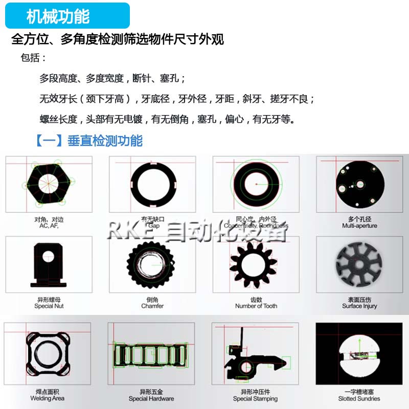 公司申请多项专利技术及发明专利,还有几项技术处于同行业领选水平,如紧固件检测精度 高达0.01mm,五金零件气孔砂眼探伤检测,活塞、五金件气密性检测精度<0.1%,自动检测速度高达 1200个/分钟,机械电子光学智能化整合,系统设备能全天24H稳定运行,整机兼容性高。