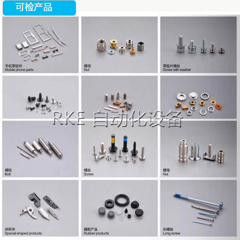 2、检测的范围:螺丝、螺母、汽车配件、手机零配件、航空件、塑胶件、磁芯产品、表面缺陷、外观尺寸、连接器、冲压件、字符等等,都是可以进行检测筛选的。