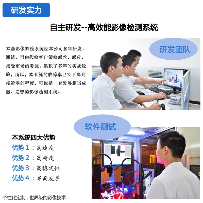 设备检测范围宽:可以检测螺丝、螺母、手机零配件、汽车配件、航空紧固件、塑胶产品、磁芯产品等。