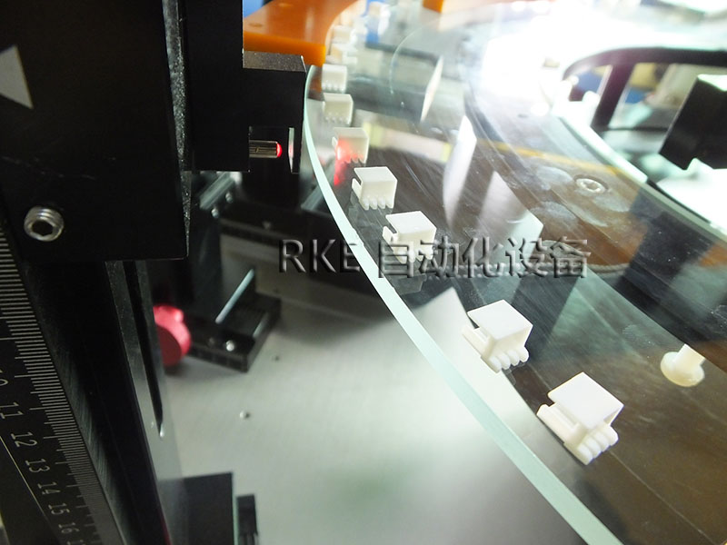 CCD影像筛选设备检测连接器外观,利用玻璃的透光性,把物品放在玻璃盘上进行检测,节省劳力,检测速度快,效率高。