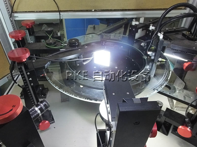 CCD视觉检测手机螺丝,利用玻璃的透光性,把物品放在玻璃盘上进行检测,节省劳力,检测速度快,效率高。
